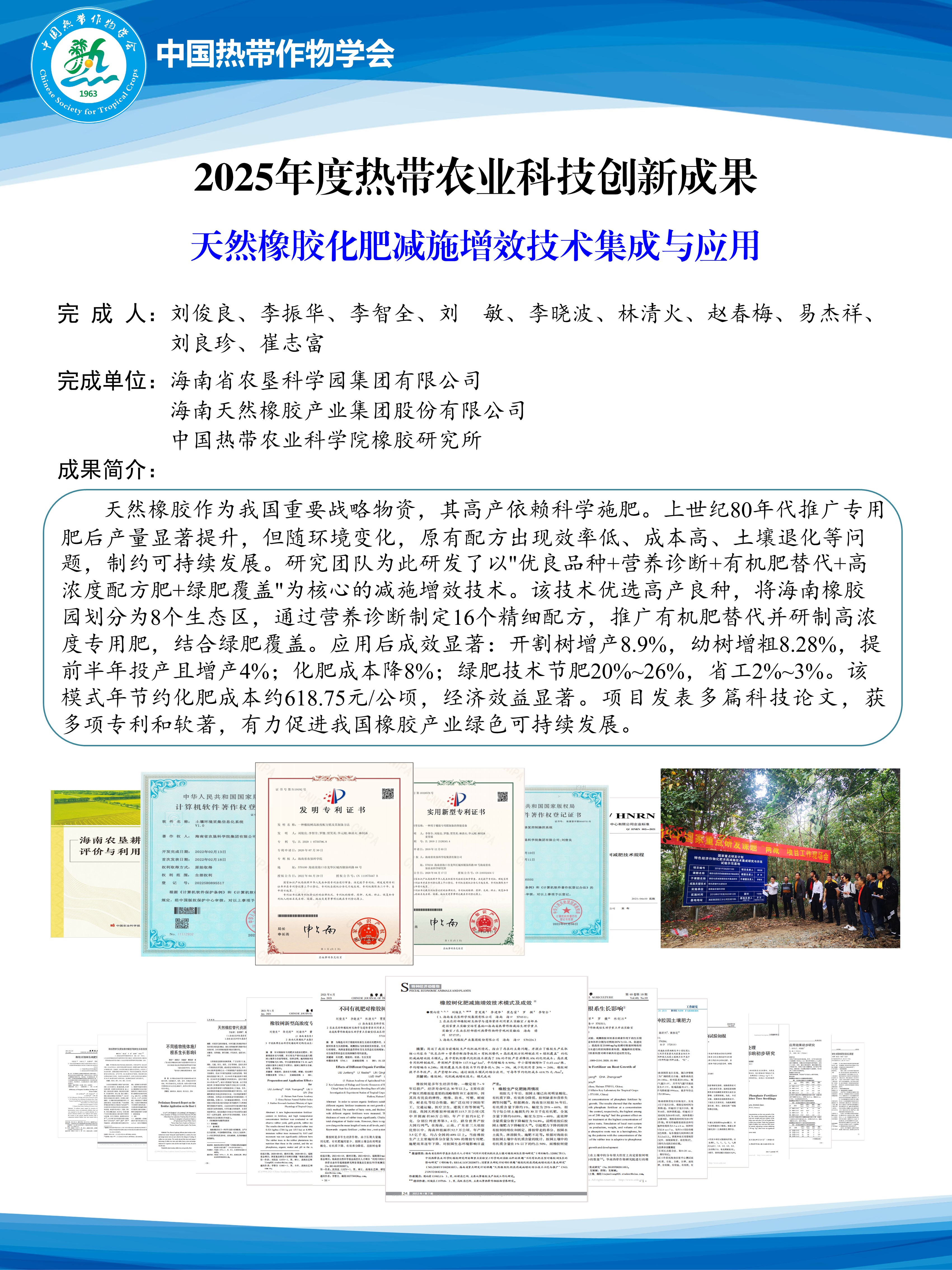 2025年度热带农业科技创新成果五:天然橡胶化肥减施增效技术集成与应用