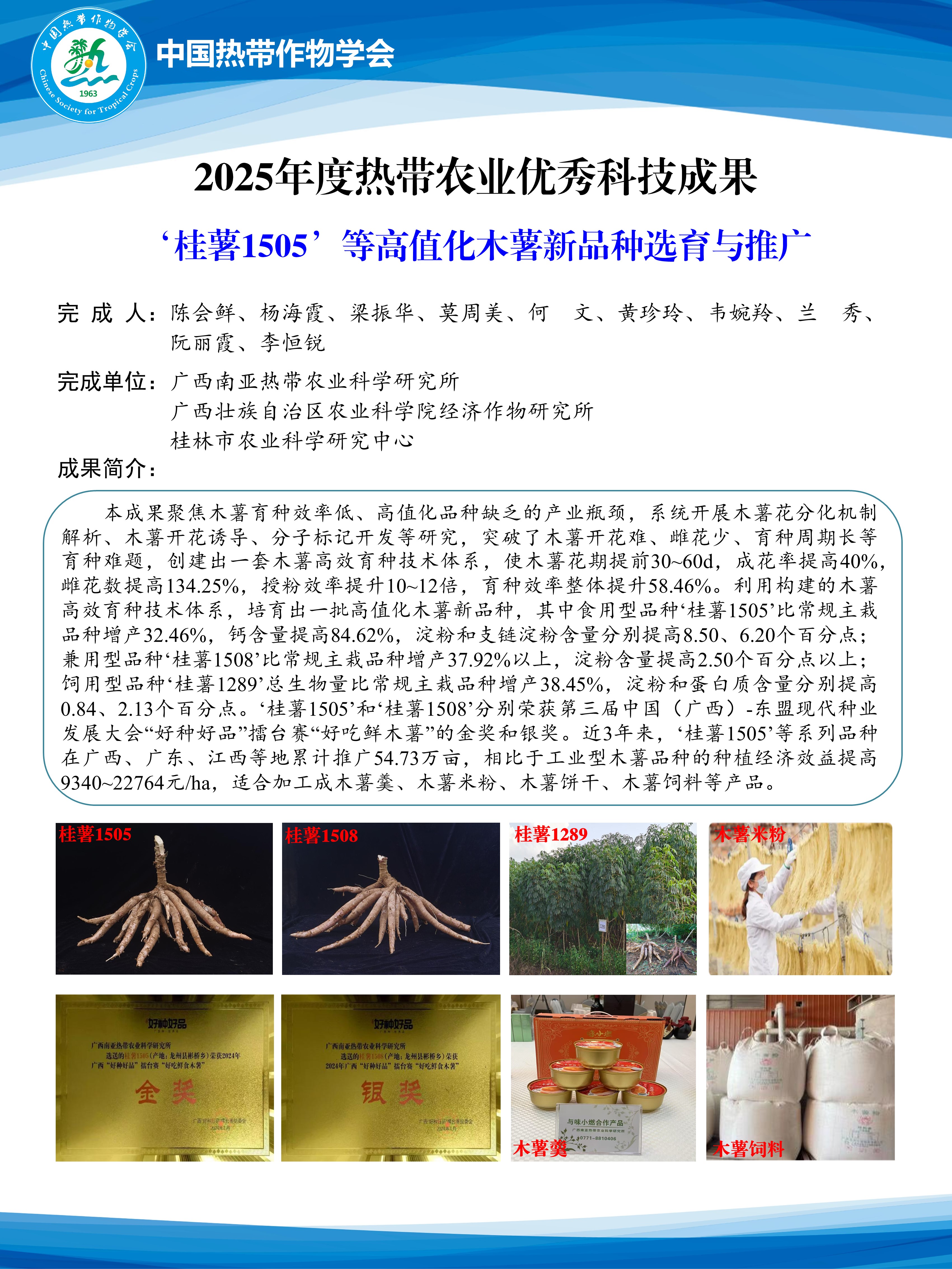 2025年度热带农业科技创新成果九:‘桂薯1505’等高值化木薯新品种选育与推广